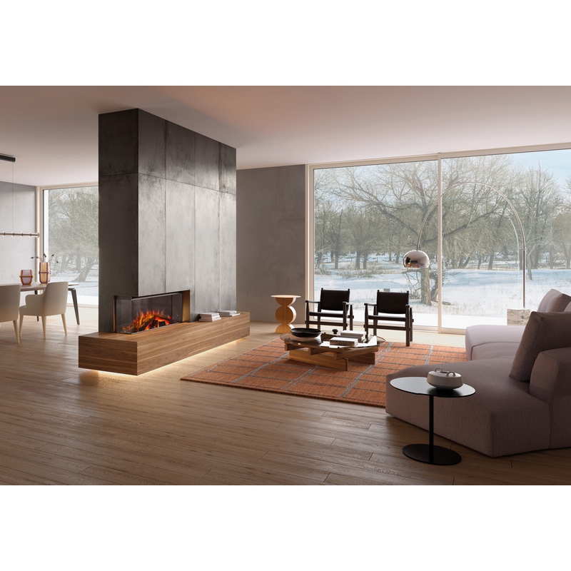 Με πλάτος 1200 mm το ηλεκτρικό τζάκι LUMEN 1200 είναι ιδανικό για εσάς που θέλετε ένα τζάκι που συνδυάζει την κομψότητα με την εντυπωσιακή όψη. Μπορεί να τοποθετηθεί σε τοίχο ή με μια αντίσοιχη επένδυση στο δάπεδο. Το ίδιο τζάκι μπορεί να διαμορφωθεί σε μιας όψης - ίσιο, δύο όψεων - γωνιακό ή τριών όψεων - πανοραμικό. Στην περίπτωση εγκατάστασης σε τοίχο και διαμόρφωση 3 όψεων, διατίτεται ως αξεσουάρ μεγάλη κορνίζα/επένδυση σε 3 αποχρώσεις: λευκό κιμωλίας, ανθρακί και πέτρα.